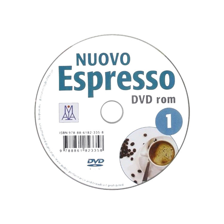 کتاب Nuovo Espresso 1 به همراه یک عدد DVD حاوی فایلهای صوتی و تصویری ارائه میشود تا زبان آموزان ضمن آموزش بتوانند تمرین بیشتری انجام داده و میزان پیشرفت خود را محک بزنند. از جمله مواردی که در این فایل DVD قرار داده شده است میتوان به صداهای تمرینات کتاب، درسهای شنیداری و اپیزودهای بخش Videocourse و بخش Videogrammatica اشاره کرد.